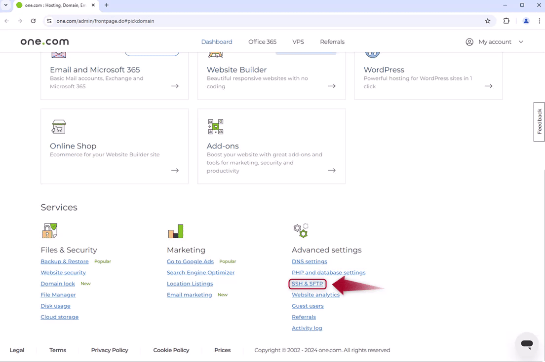 1. Cliquez sur ici pour ouvrir le SSH et FTP section sous Paramètres avancés dans le Panneau de configuration.